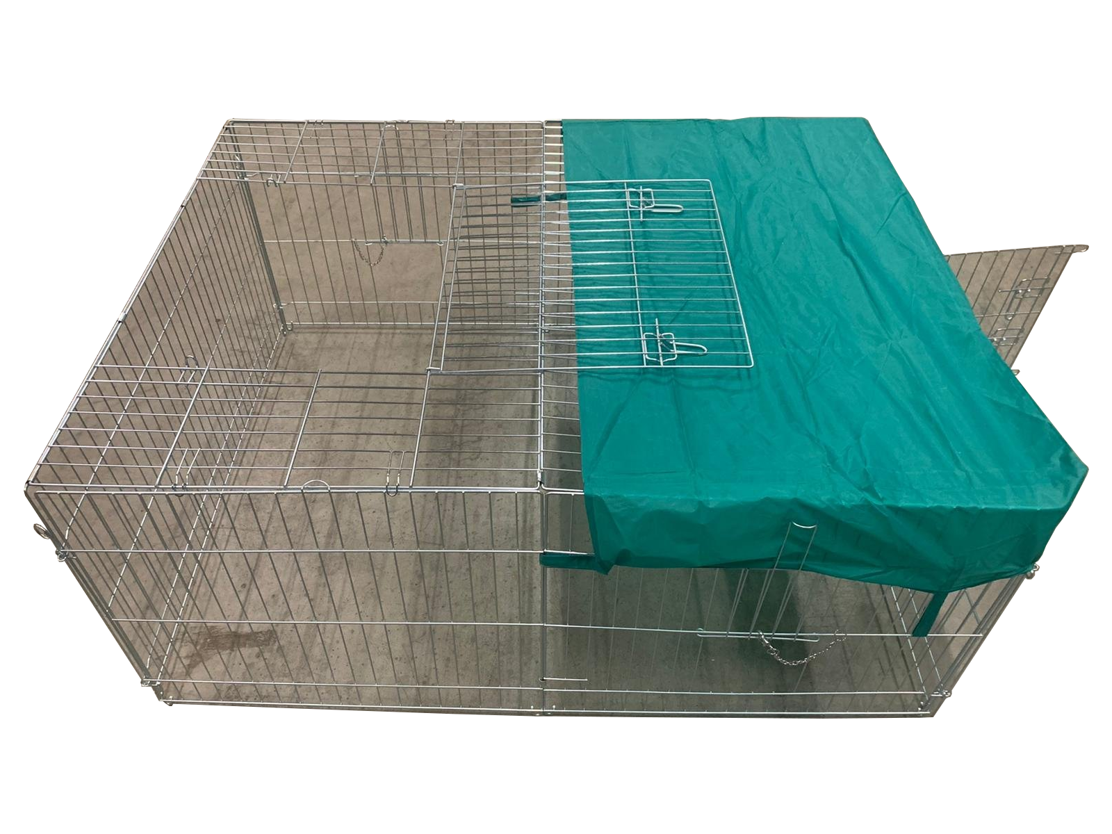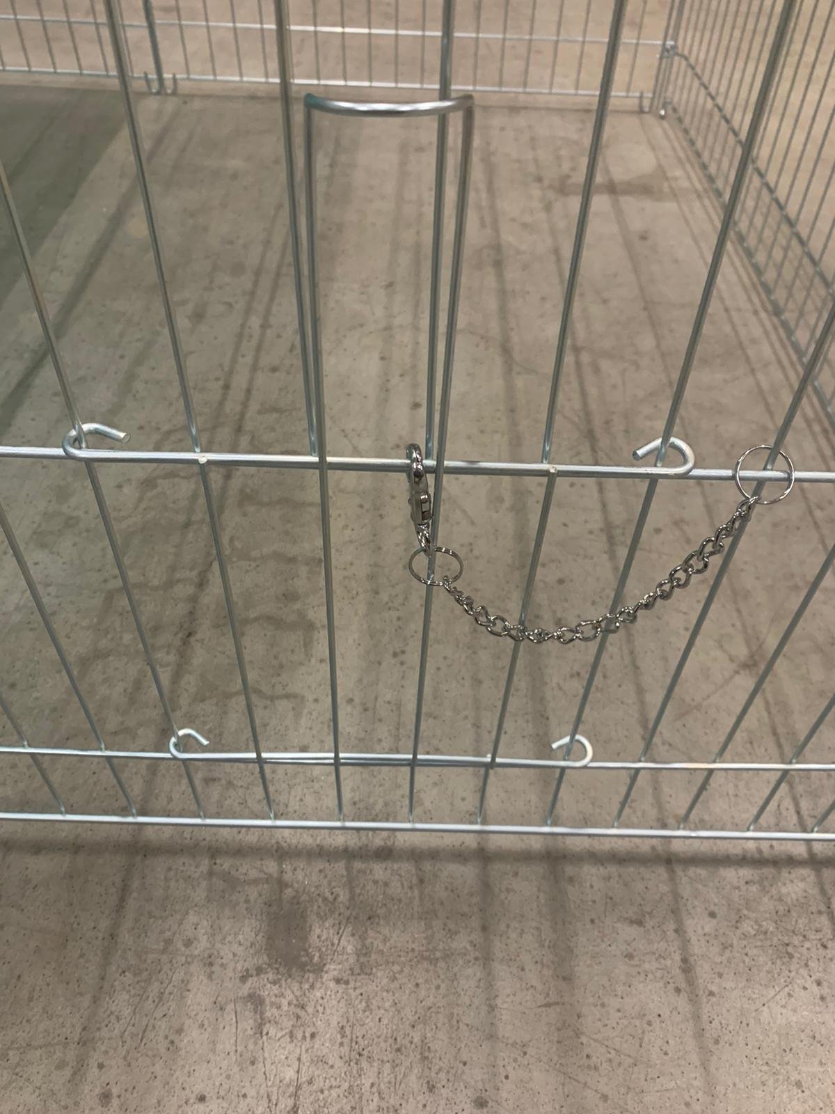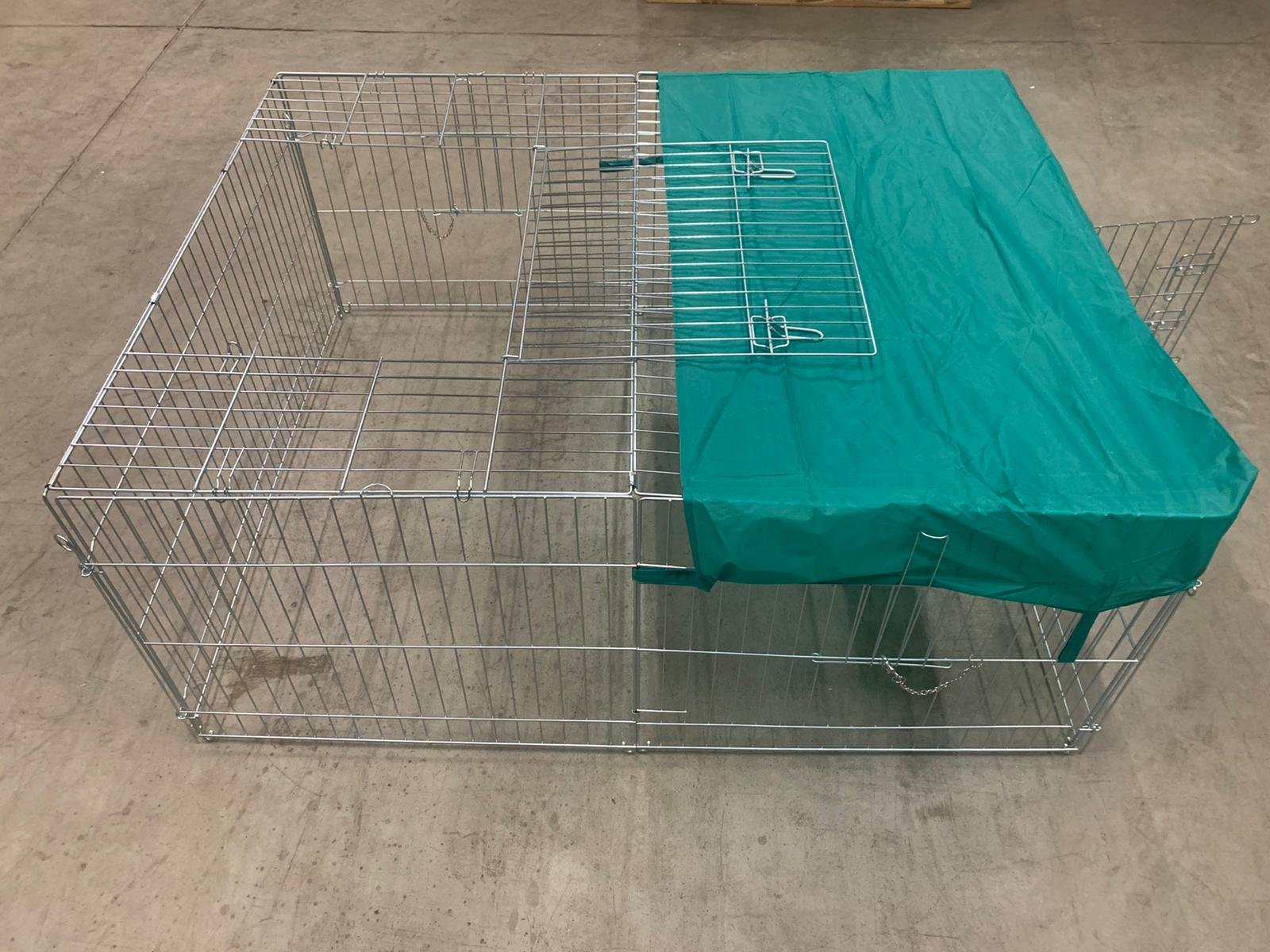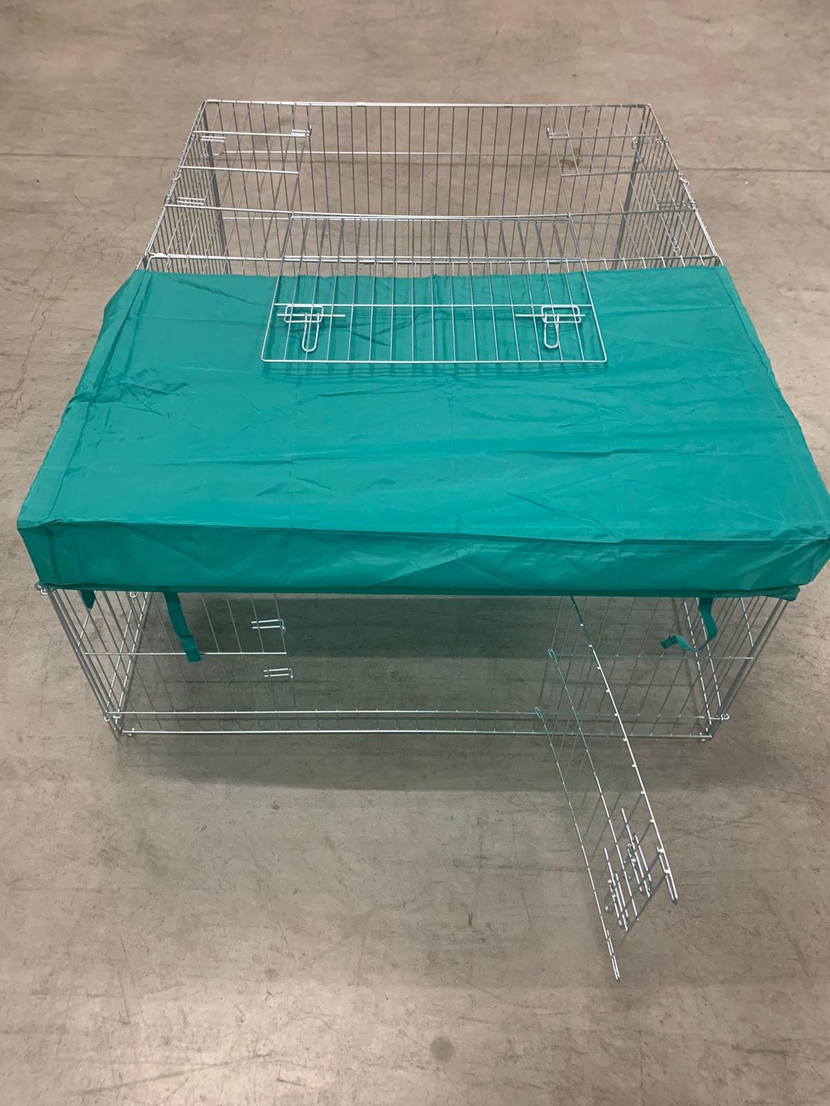 Súčasťou klietky sú aj uzamykateľné dvere, nepremokavá plachta z vysoko kvalitného a odolného materiálu a pletivo s jemným okom.