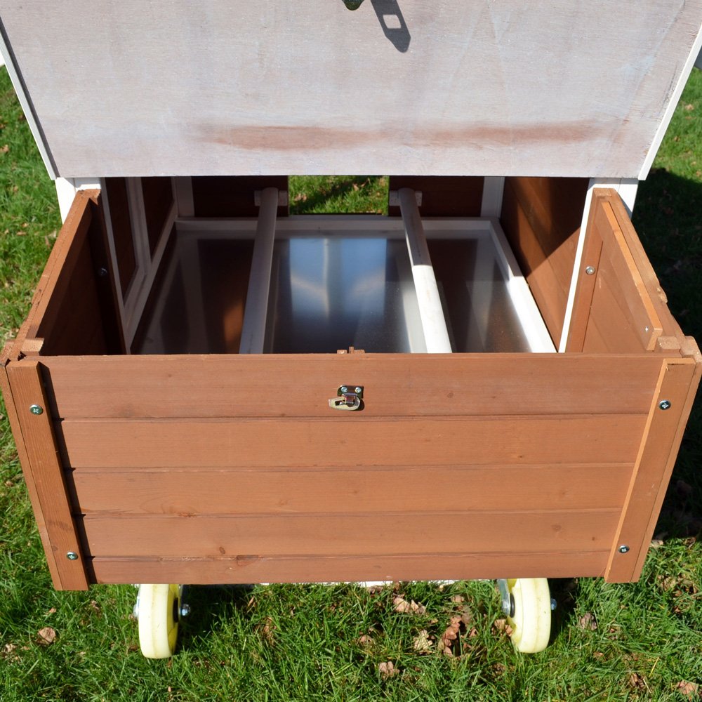 Mobilný kurník ponúka všetko pohodlie, ktoré si pre vaše sliepočky prajete, a to aj vďaka veľkej znáškovej krabici, robustným kolesám a madlám. V lete môžete kurník vrátane kurčiat rýchlo odviezť do tieňa a za daždivého počasia napríklad z blatistej lúky do suchej oblasti. S kuracím domčekom Mobil ste maximálne flexibilný. Mobilný kurník je dnes súčasťou moderného chovu sliepok a praje si ho mať na dvore takmer každý chovateľ.