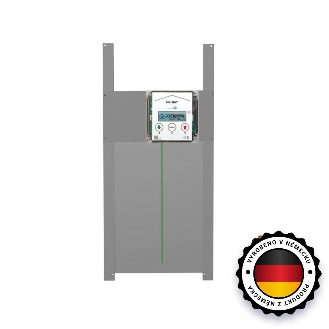 JOSTechnik HK-Bat 23x34 R je kompletní systém automatického otevírání kurníku zabudovaný v pevném rámu. Toto zařízení má výkonný motor, který dokáže zvednout dvířka o hmotnosti až 2 kg. Přístroj je vybaven odolným pouzdrem, a tak zajišťuje ochranu při povětrnostním podmínkách. Všechny potřebné informace o nastavení jsou přehledně znázorněny na LCD displeji. LCD displej přejde po určité době nečinnosti do "režimu spánku", aby se zvýšila životnost displeje. Zařízení znovu "probudíte" stisknutím jakékoliv tlačítka.