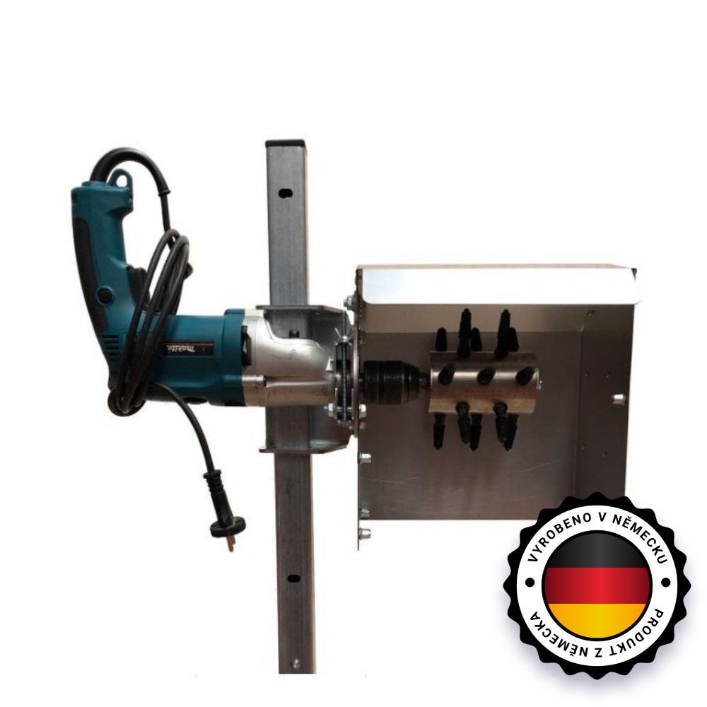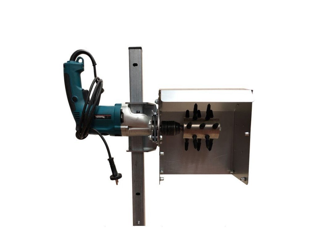 Inštalácia šklbačky hydiny na vŕtačku s ochranným krytom a stojanom: