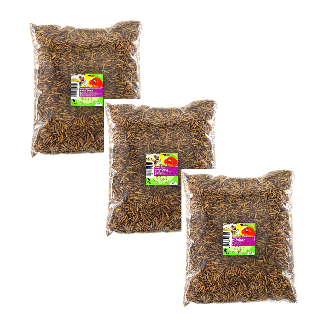 Sušené larvy bránenky, 3 kg. Znovuuzatvárateľné balenie 100% recyklovateľné, vďaka ktorému si produkt zachováva najvyššiu kvalitu a dobre sa skladuje.