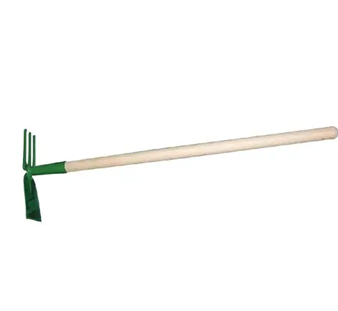Ručná okopávačka s tromi hrotmi na odstraňovanie buriny a kyprenie pôdy na zeleninovom záhone okolo rastlín.
