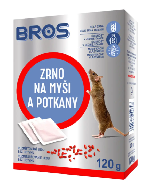 Zrno na likvidáciu myší vo vnútri budov a likvidáciu potkanov vo vnútri aj okolo budov. Obsahuje návnadu, ktorá silne láka hlodavce a účinkuje už po prvom použití. Účinok oneskorený niekoľko dní, zabraňuje hlodavcom spájať jed s elimináciou iných jedincov. Výrobok má mumifikujúci účinok a obsahuje látku, ktorá zabraňuje náhodnému požitiu osôb a zvierat. Špeciálne vybrané obilné zrná robia tento produkt výnimočne atraktívnym pre hlodavce.
