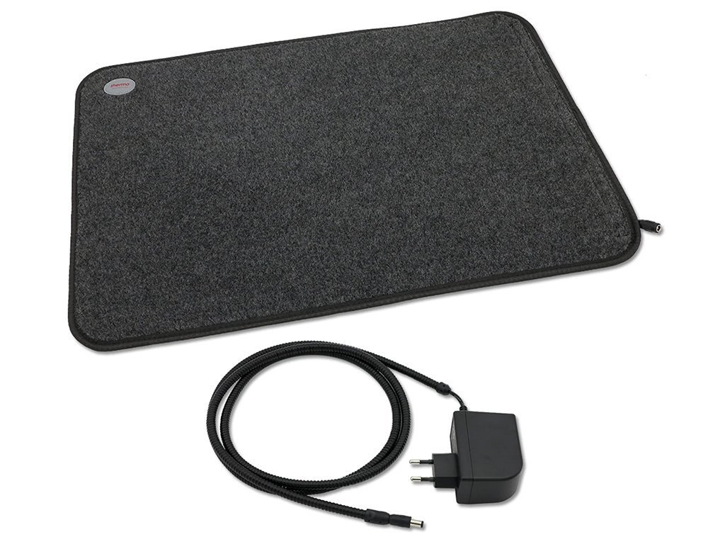 Vyhrievaná podložka má rozmery 40 x 60 x 0,7 cm, a preto je výborná pre menšie plemená psov alebo pre mačky. Vykurovacia doska je vložená do vnútornej časti koberca a zapnutá na suchý zips. Vrchná strana koberca je vyrobená z veľmi odolného mäkkého fleecu, pre pohodlný odpočinok maznáčikov. Nemusíte sa báť, že položka bude kĺzať po podlahe, pretože spodná strana podložky má protišmykovú úpravu a navyše izoluje proti úniku tepla.
