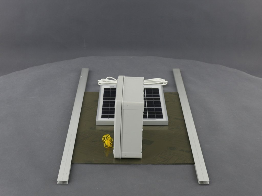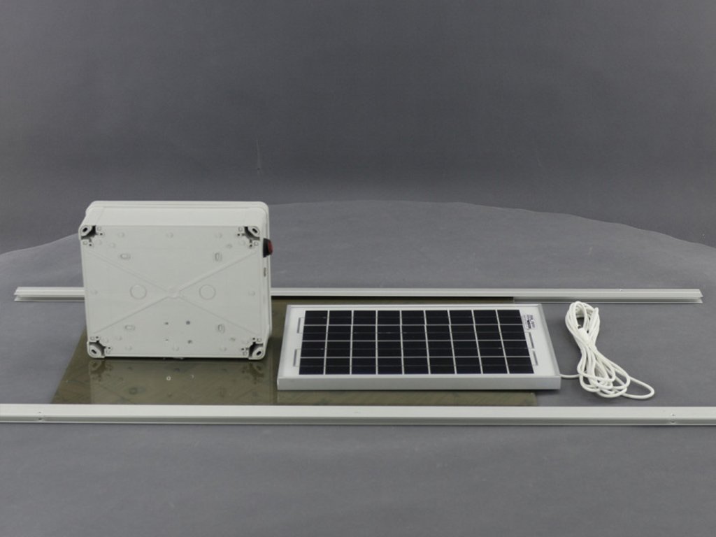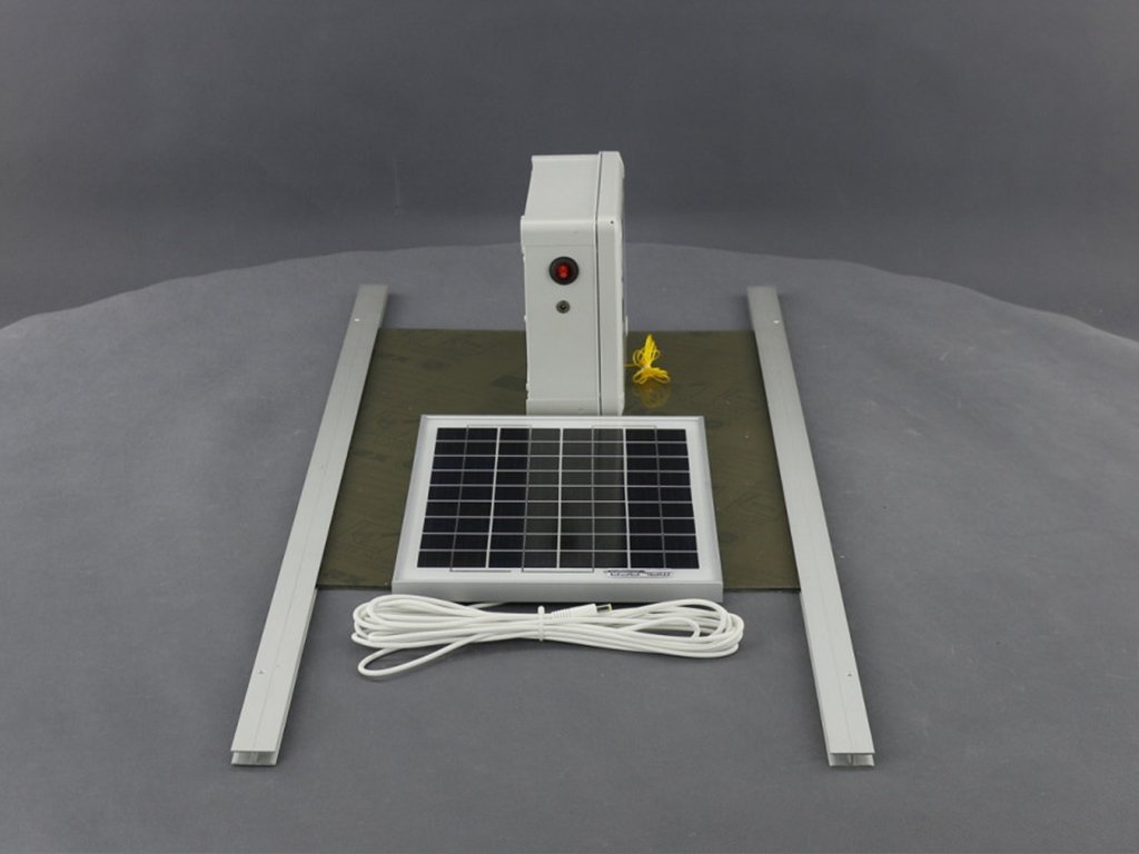 Zariadenie je napájané pomocou solárneho panelu 10 W, ktorý vyrába elektrickú energiu premenou priamo zo slnečného svetla. Súčasťou balenia je aj integrovaný bezúdržbový akumulátor s celkovou kapacitou 2,3Ah/10V. Solárny panel môže byť vďaka dostatočnému krytiu umiestnený vo vonkajšom prostredí. Plocha panelu by mala byť vystavená najlepšie na južnú stranu, kvôli najväčšej možnej intenzite slnečného žiarenia. Ideálny sklon pod akým dopadá svetlo na solárny panel je v našich podmienkach 35°. Akumulátor vydrží napájať prístroj až 7 dni bez dostatočného slnečného svetla. Na nabitie akumulátora stačí 8 hodiny slnečného svitu. Akumulátor je možné nabiť externým napätím z auta alebo siete napr. adaptérom. Napájací kábel na pripojenie má dĺžku 5 metrov.