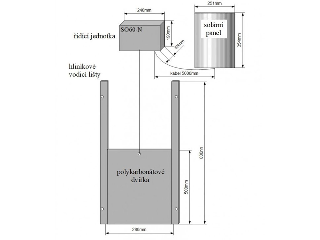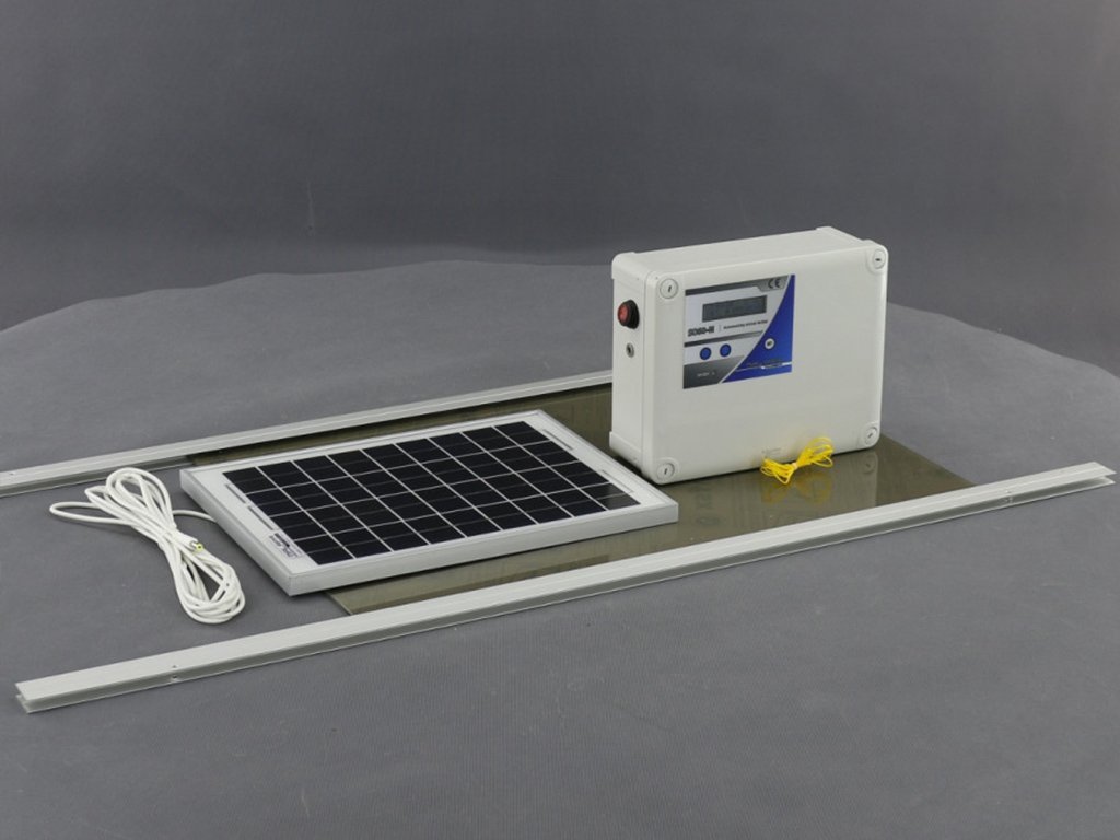 Automatické otváranie s dvierkami 28x50 cm, časovač, svetelný senzor, do -15 °C, solárny panel 10W vrátane akumulátora 12V/2,3Ah. Pokiaľ nemáte elektriku privedenú ku kurníku a nechcete sa zaoberať výmenou batérií, máme pre vás skvelé a navyše ekologické riešenie. Toto automatické otváranie kurníku je napájané solárnym fotovoltaickým panelom, ktorý získava elektrickú energiu priamo zo slnečného svetla. Vďaka integrovanému akumulátoru s kapacitou 2,3Ah vydrží prístroj až 7 dní bez dostatočného slnečného svetla. Automatický otvárač kurníka disponuje niekoľkými užitočnými funkciami ako je svetelný senzor, časový a súmrakový spínač. Nastavenie zariadenia je pritom veľmi jednoduché pomocou dvojriadkového LCD displeja v českom jazyku. Nevyhnutnou súčasťou zariadenia sú dvierka a koľajnice. Toto zariadenie vybavené výkonným motorom, je určené na zdvíhanie dvierok do hmotnosti 4 kg.