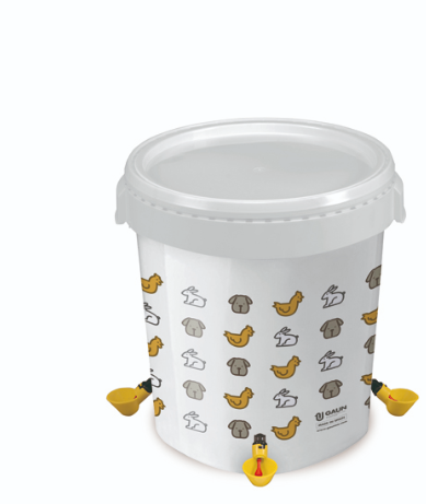 Napájacie vedierko vhodné pre sliepky, kačice a inú hydinu. Po obvode vedra sa nachádzajú napájacie mištičky, ktoré sa naplnia v momente stlačenia zobákom. Hygienické a praktické!