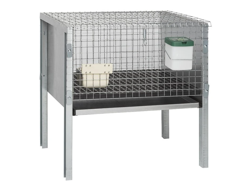 Pozinkovaná klietka pre králiky, plastový podlahový rošt, vysúvateľný trusník, napájačka a krmítko, rozmery 56x41x57cm. Ak hľadáte skvelú a odolnú klietku pre králika, tak ste tu správne. Táto pozinkovaná klietka Vám vydrží roky a poskytne králikovi čisté prostredie. Vďaka plastovému podlahovému roštu bude trus králika prepadávať do trusníka, ktorý ľahko vysuniete a vyčistíte. Plastová podlaha králika nechladí a je navrhnutá pre jeho pohodlie. Klietka je vybavená aj krmítkom a napájačkou a tak je vhodná na okamžité používanie bez nutnosti niečo dokupovať.