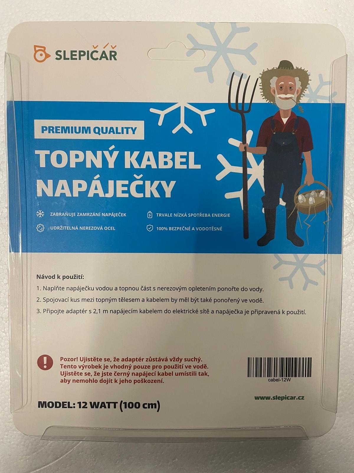 Vykurovací kábel proti zamŕzaniu vody v napájačkách, s nerezovým opletením vykurovacieho telesa, káblom dlhým 100 cm, s adaptérom 12 V a výkonom 12 W. Pokiaľ hľadáte riešenie pre zamŕzajúcu vodu v napájačkách, máme pre Vás praktický vykurovací kábel, ktorý je určený priamo do vody. Tento praktický kábel je vhodný do všetkých druhov napájačiek od plastových až po kovové. Vykurovacia časť kábla je pokrytá nerezovým opletením, ktoré je nielen pružné a flexibilné, takže sa dá kábel tvarovať, ale aj nekoroduje, a preto môže byť ponorené vo vode celú zimnú sezónu.