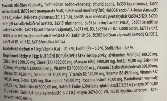 | Druh krmiva | Minerálne doplnky |