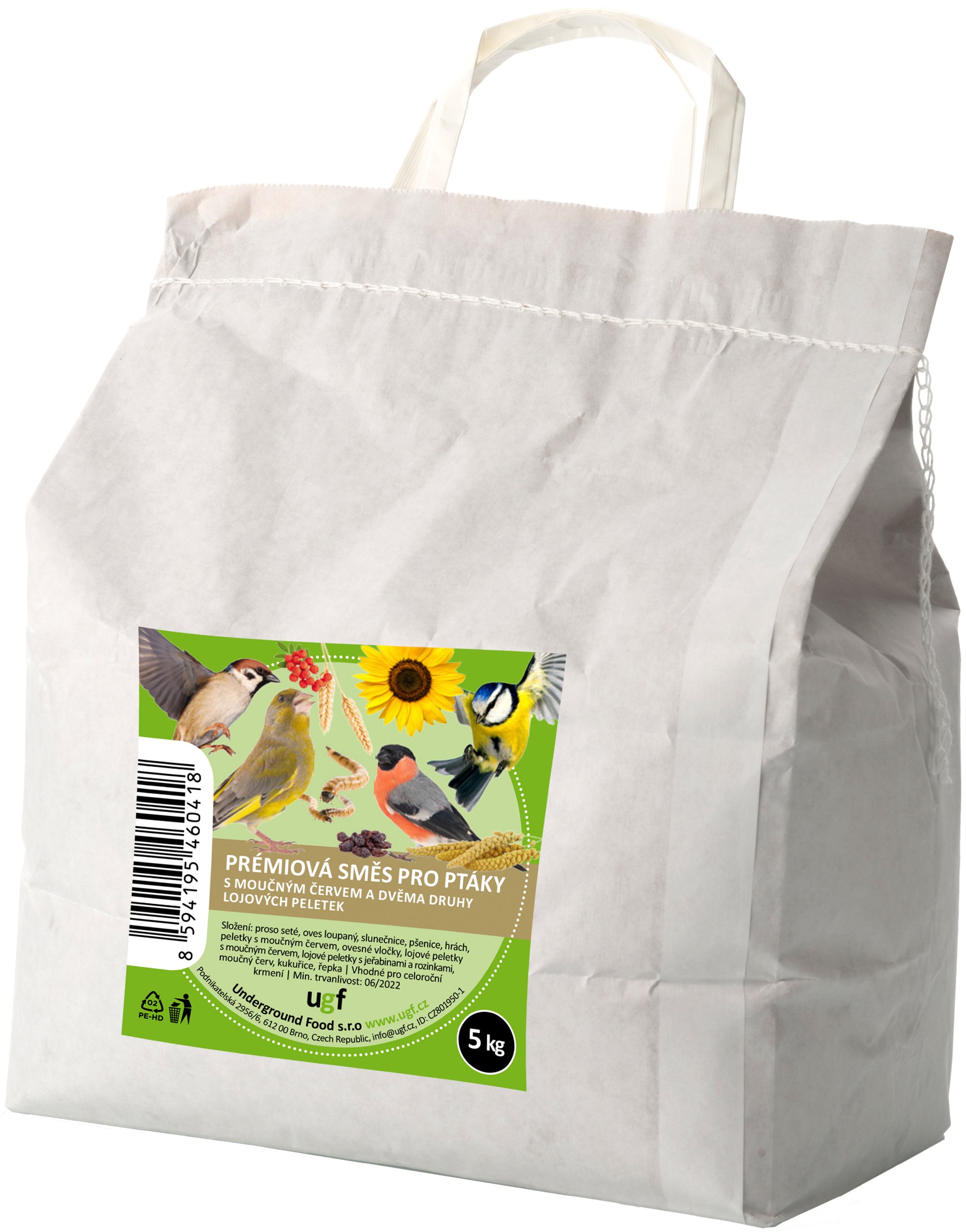 Zmes pre vtáky je pestrý mix semien, peletiek s múčnym červom, múčnych červov, lojových peletiek s múčnym červom a lojových peletiek s jarabinami a hrozienkami. Zmes je špeciálne kombinovaná a vyvážená z vysoko kvalitných surovín. Je vhodná na celoročné kŕmenie vtákov. Receptúra pripravená v Česku.