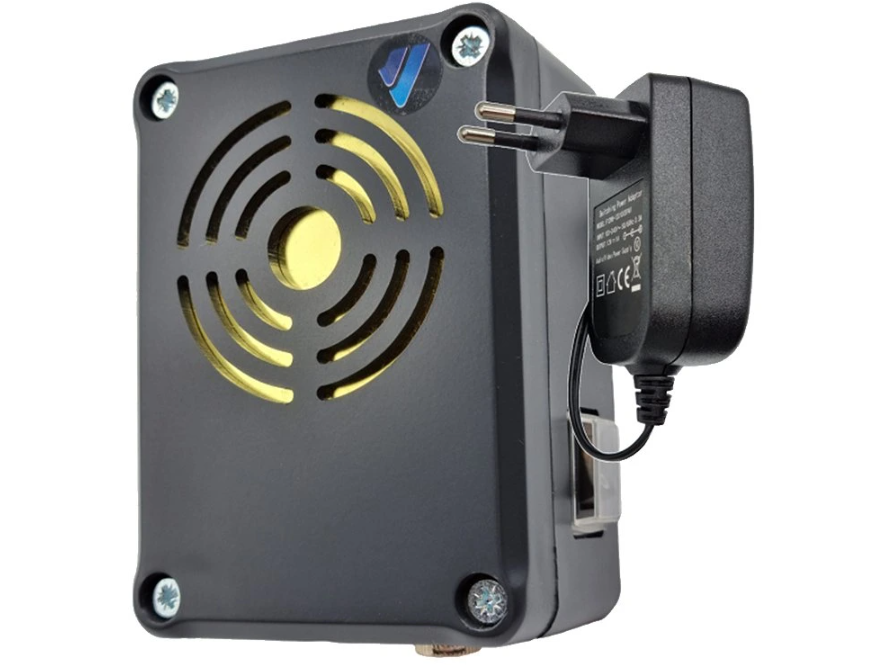 Zariadenie je napájané cez 12V adaptér, ktorý je súčasťou balenia. Odpudzovač disponuje praktickým vypínačom v ochrannom puzdre, vďaka ktorému ho môžete jednoducho vypnúť a zapnúť bez nutnosti vypojiť adaptér zo siete.