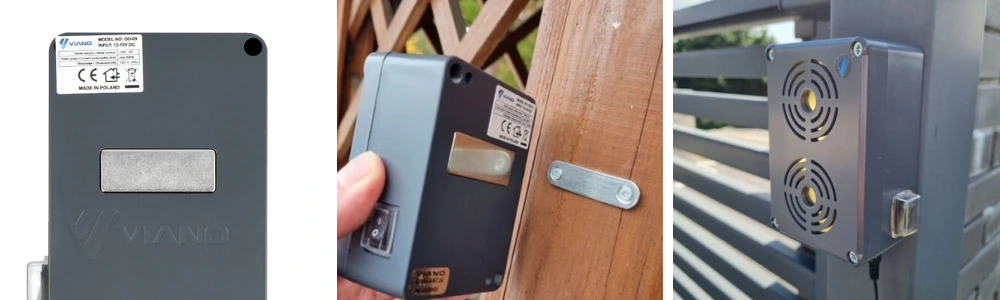 Odpudzovač VIANO pripevníte pomocou magnetického držiaka ľahko, rýchlo a bezpečne na takmer akýkoľvek povrch. Odpudzovač je vybavený silným neodymovým magnetom, používaným v priemyselnej upevňovacej technike. Stačí tak kúsok kovového povrchu, napr. potrubie, zábradlie, odkvap, kovový parapet, strešné konštrukcie, kúrenie atď. a ihneď máte bez akejkoľvek montáže prístroj nainštalovaný.