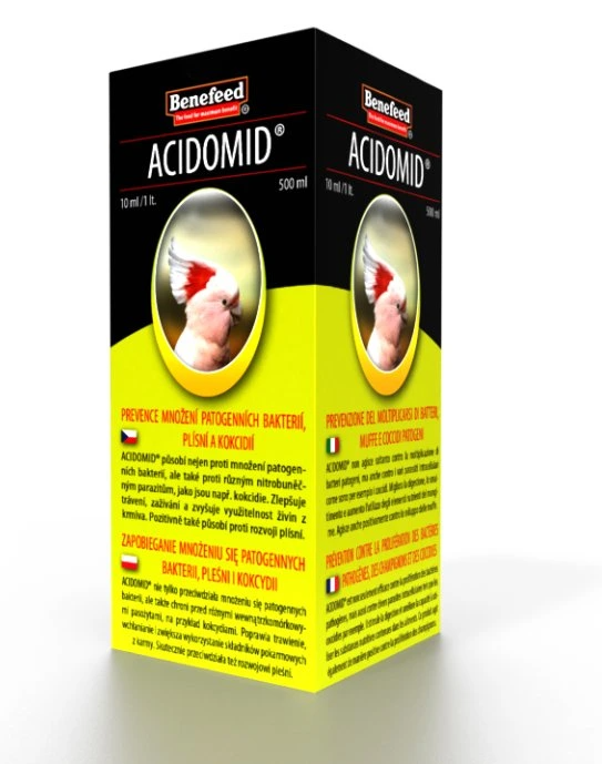 ACIDOMID® je špičkový prípravok s modernou koncepciou, ktorý nielenže pôsobí proti množeniu patogénnych baktérií, ale tiež brzdí vývoj a množenie vnútrobunkových parazitov, ako sú kokcídie. ACIDOMID® však nie je liečivo, neobsahuje kokcidiostatiká a nezanecháva rezíduá v tele. Takisto nemá žiadnu ochrannú lehotu.
