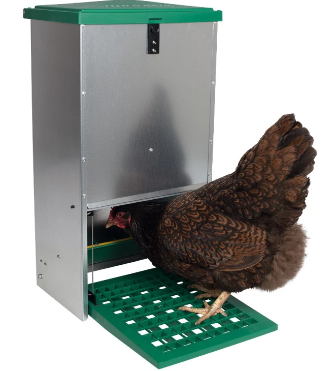 Pri použití kŕmneho zariadenia Feed-o-matic je krmivo prístupné len vtedy, keď sliepka stojí na podstavci. Myši, potkany a vtáky sa ku krmivu nedostanú, a preto nemôžu kontaminovať zrno. Feedomatic chráni hydinu pred nebezpečnými chorobami. Nožné kŕmidlo je stabilné, ľahko sa čistí a je odolné voči striekajúcej vode.