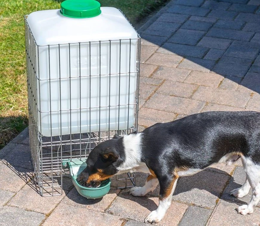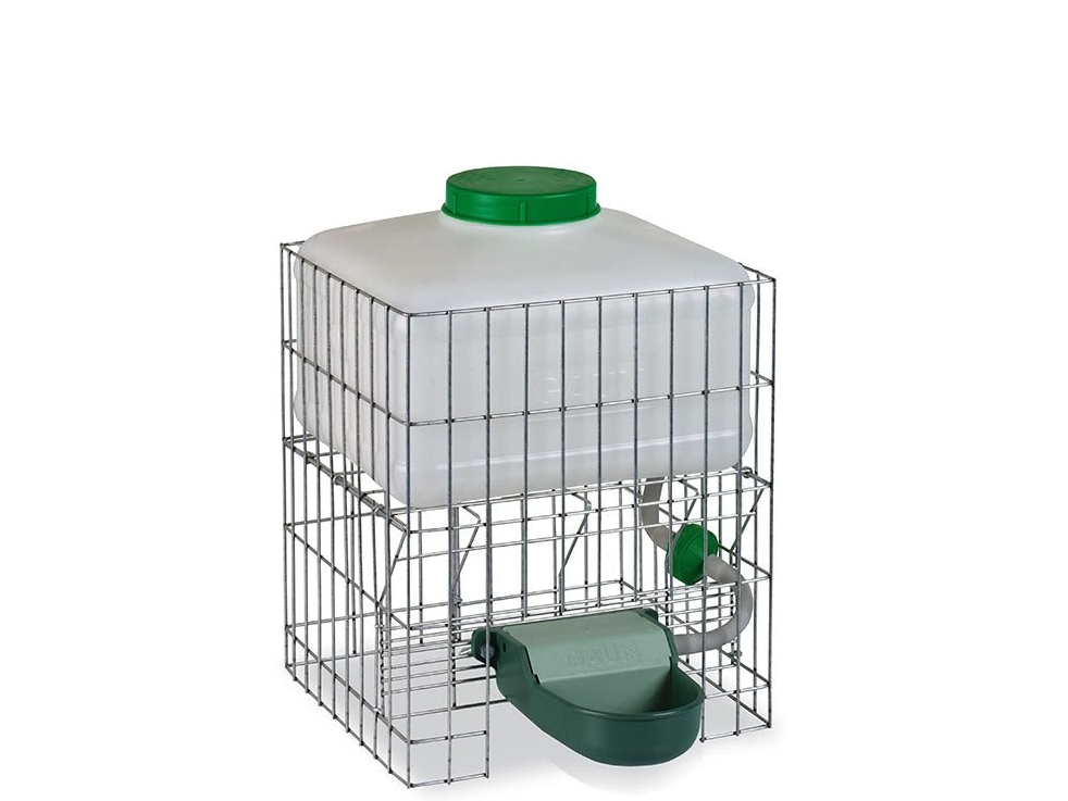 Táto napájačka pri poklese hladiny sama dopustí vodu zo zásobného barelu a to vďaka inovatívnemu plavákovému systému. Vy už tak nemusíte denne chodiť dolievať vodu, ona to urobí za vás. Napájačka disponuje aj vodným filtrom a zvieratá tak budú mať prístup vždy k čistej vode. Celý napájací systém je zasadený do kovovej mreže, ktorá ochráni barel pred prevrhnutím alebo okusom. Navyše mreža drží barel a vytvára potrebný spád pre vodu, ktorá sa pomocou ohybnej hadice dostane ľahko priamo do napájačky. Túto ľahko prenosnú napájačku tak môžete umiestniť kamkoľvek do výbehu, alebo aj do priestrannejšieho kurníka.