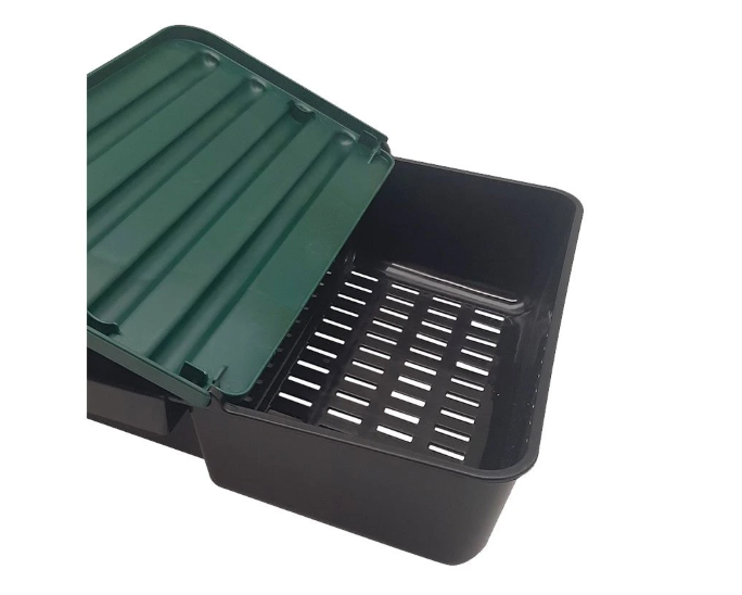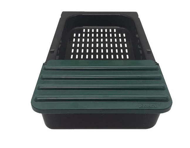 Vďaka košíku zostanú vajíčka čisté a nepoškodené v nádobe s vrchnákom. Veľmi jednoduchá údržba čistoty, jednoduchá montáž a demontáž. Plastový kotlíkový kôš s vekom až pre 5 sliepok. Košík slúži ako vložka do hniezda na znášanie vajíčok, vďaka padajúcemu dnu sa vajíčka bezpečne skotúľajú do nádoby, čisté a nepoškodené.
