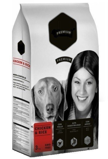 Kompletní prémiové krmivo pro dospělé psy s příchutí kuřecího masa a rýže.