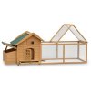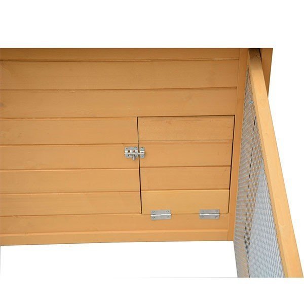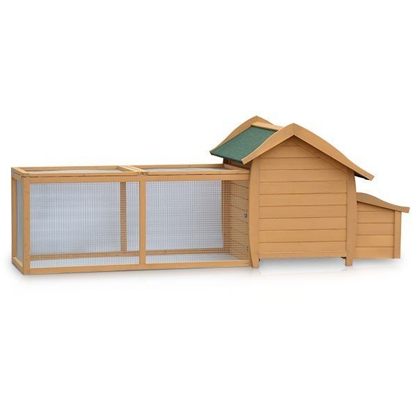 Na druhej strane je priestranná vonkajšia plocha, do ktorej sa dostanete z kurníka cez lávku pre sliepky. Výstup ponúka dostatok priestoru pre hranie, hrabanie a zobanie. Takže si vaše sliepky môžu vychutnať čerstvý vzduch a hrabať, bez toho aby vám zničili záhradu. Skriňa má sklopnú strechu, ktorá umožňuje ľahký prístup.