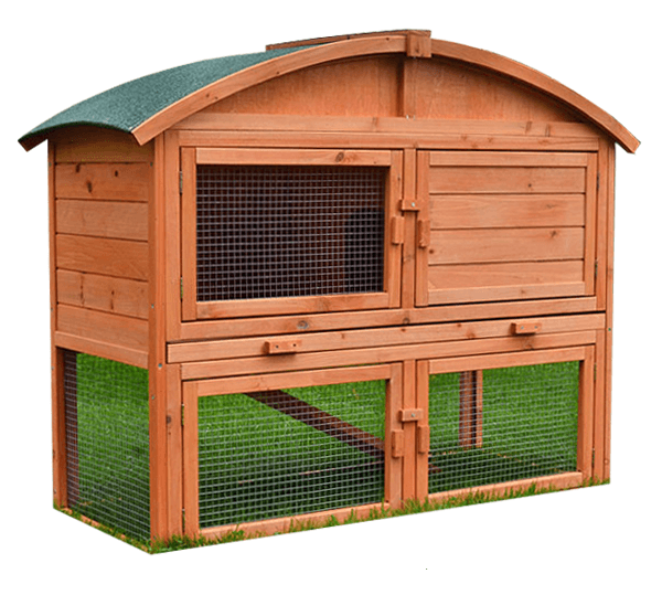 Dvojposchodová králíkárna s klenutou strechou dodá vašej záhrade moderný a vzdušný vzhľad. V spodnej časti je oblasť voľnobehu. S vynikajúcim celkovým výhľadom a chráneným pred dažďom a slnkom zo zhora, môže byť táto králikárne veľmi užitočné.