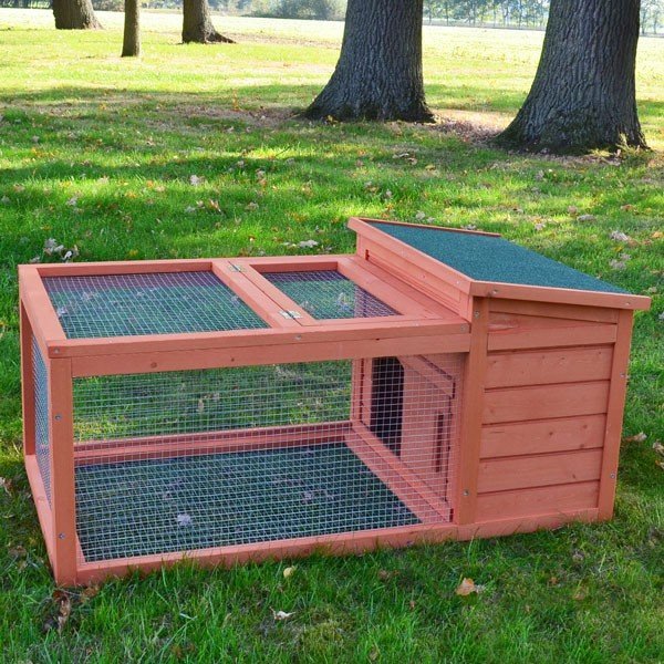 Malá, zato krásna stodola pre králika, ktora ponuka všetko, čo váš králik potrebuje. Útulná stabilná oblasť je ideálna útočisko pre spánok, odpočinok a hniezdenie vašich králíková. Na drôt moze napríklad pripojiť fľaša na pitie, misku a malý stojan na seno. Tiez podlaha je vybavená drôtom, takže vaši králiky sa cez von neprohrabou.