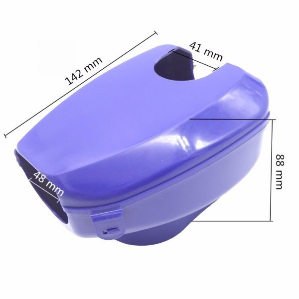 Plastový držiak k holubov, ktorý chovatelia používajú na prevoz, alebo kŕmenie chorých vtákov. Vyrobené z odolného plastu v modrej farbe. Rozmer 14, 2 x 8, 8 x 4, 1 cm.