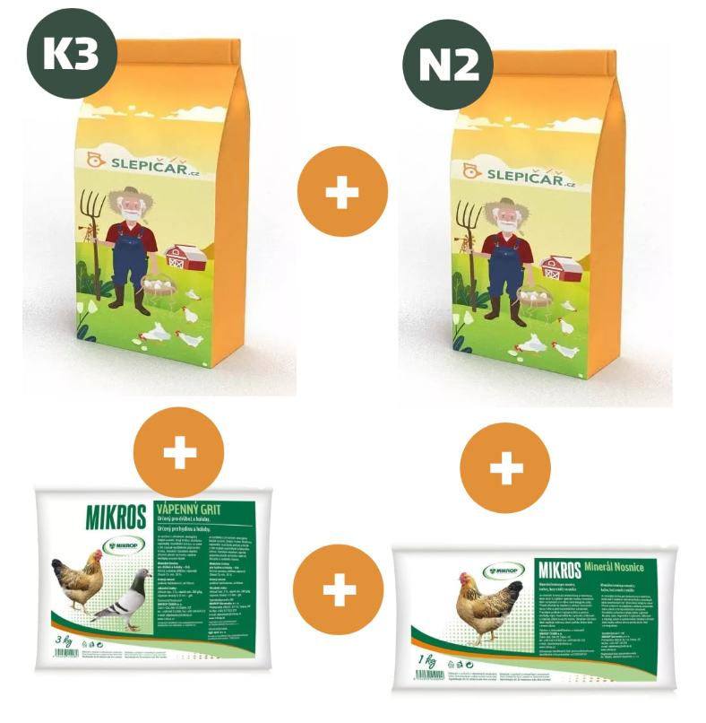 Kŕmny balík predstavuje pomyselnú barličku pre začínajúcich chovateľov. Balíček obsahuje základné kŕmne produkty pre úplného začiatočníka, ktorý sa rozhodol pre svoje domáce vajíčka. Vybrali sme pre Vás taký tovar, ktorý patrí do základnej výbavy krmív pre úspešný chov sliepok. A teraz už vám postačí len dobre postavený kurník. Vďaka výhodnému balíčku samozrejme ušetríte nemalý peniaz.