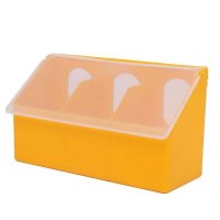 Plastové krmítko pre obsluhu troch holubov. Ľahké umiestnenie do holubníka alebo priamo na zem k holubom.