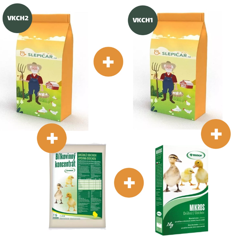 Kŕmna zmes pre husi a kačice VKCH1 10 kg týmto štartérovým krmivom kŕmime kačice od ich prvého dňa až do 3. týždňa veku, kedy prechádzame na kŕmnu zmes VKCH2.