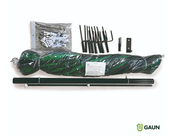 Montáž je veľmi ľahká a jednoduchá. Kovové tyče zasadíte do krajiny cca 15 cm a okolo nich natiahnete textilný plot. Na spodnú časť sa pripevní textília s menším okom, aby nemohla z výbehu utiecť ani menšia hydina. Na hornú časť potom natiahnite tkaninu väčším s okom.