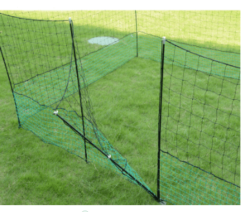 Montáž je veľmi ľahká a jednoduchá. Kovové tyče zasadíte do krajiny cca 15 cm a okolo nich natiahnete textilný plot. Na spodnú časť sa pripevní textília s menším okom, aby nemohla z výbehu utiecť ani menšia hydina. Na hornú časť potom natiahnite tkaninu väčším s okom.