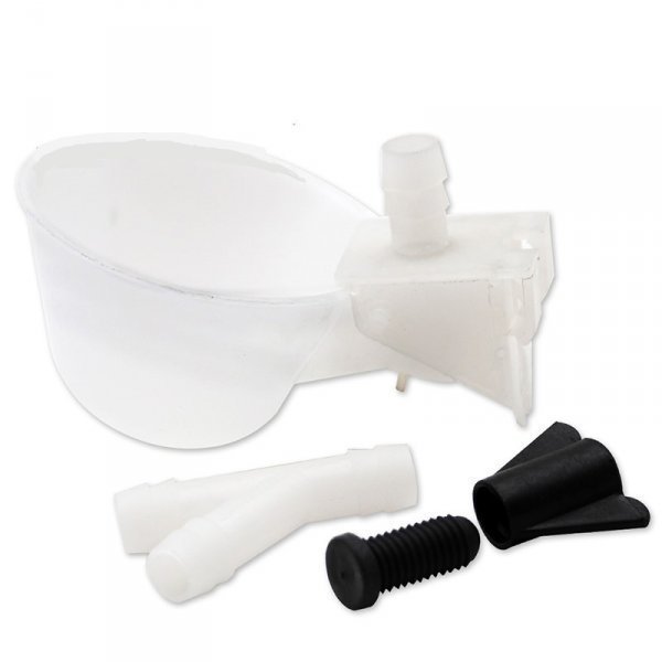 Vďaka háčkovému závesu úplne jednoducho nainštalujete na bočnice klietky, aj bežný výplet priestranných voliér a pomocou jednoduchých hadičiek rozvediete vodu do všetkých pripojených napájačiek. Pri nasypanie vtáčie zmesi možno misku samozrejme použiť aj ako bežné vtáčie krmítko.