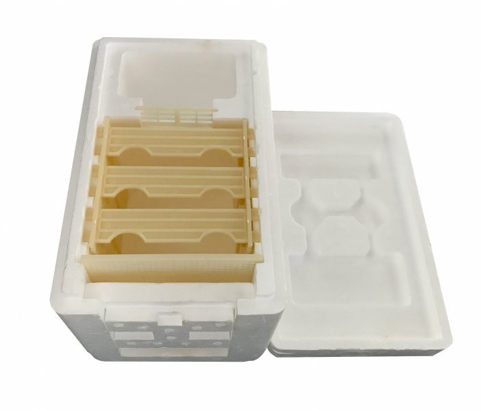 Matičný box z tvrdeného polystyrénu, pre jednu včeliu matku. Vďaka príjemne izolačnému polystyrenovému materiálu zamedzíme neustálemu striedaniu teplôt a doprajeme matke priestor pre svoje dospievanie.