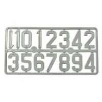 Sada 15tich plastových číslic zo čedého kvalitného plastového materiálu, s prímesou UV faktoru, vďaka ktorému sa číslice vystavenej slnečným paprpskům nekrúti a následne nepraskajú.