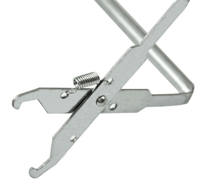 Kliešte s vratnou oceľovou pružinou a praktickým koncovým háčikom pre bezpečné zachytenie včelieho rámika. Rôzne typy včelích rámikov prenesiete vďaka pevnému zovretiu klieští bez nehody na akékoľvek vami vybrané miesto.