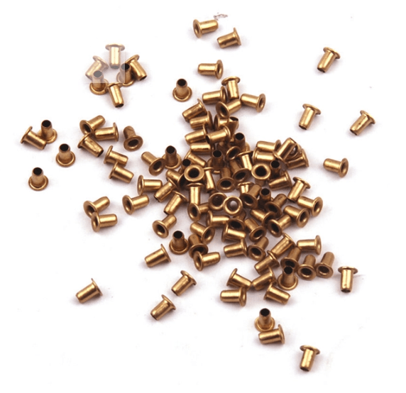 Kvalitné mosadzné objímky pre upevnenie a uchytenie včelieho vypletacieho drôtiku v drevenom rámiku.