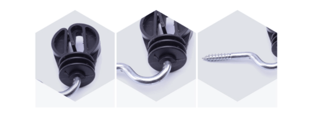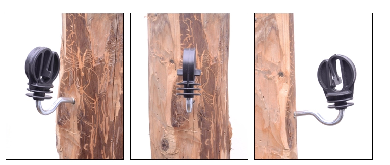Izolátor slúži prevažne na ľahké a úplne bezpečné uchytenie vodivých pások k dreveným obvodovým kolom elektrického hradenia. S praktickým skrutkou je možné použiť na ohradenie každého výbehu, bez ohľadu na jeho výšku a veľkosť.