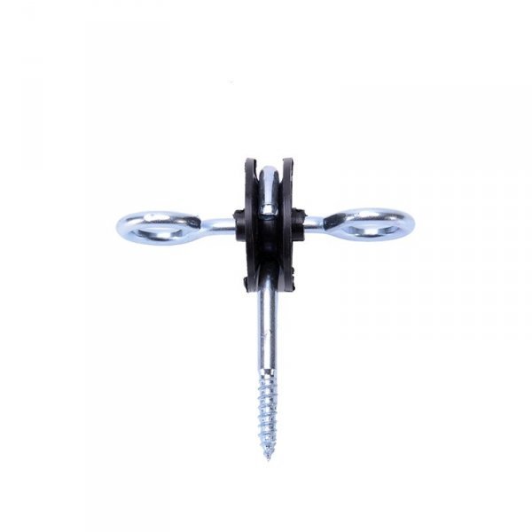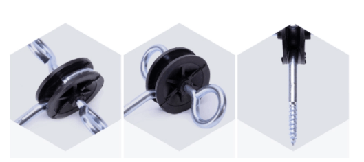 Koncový izolátor k bránke je po oboch stranách doplnený o dva kovové oblúky s vrutmi. K jednému koncu tak pripevníte vodič a ten druhý zahákujete k vchodovým dverám bránky.