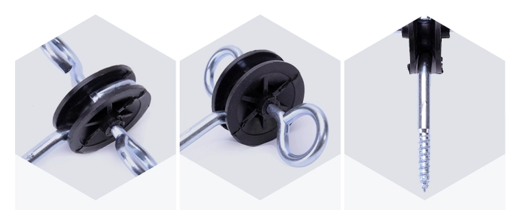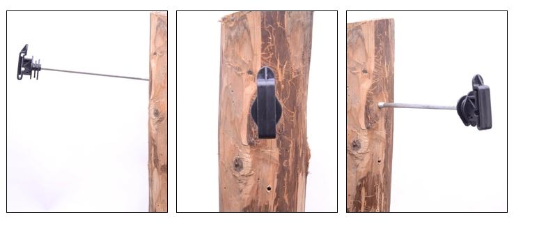 Izolátor umožňuje uchytiť vodiaci kábel, drôt alebo páskuk ohradníka k jeho konštrukcii.