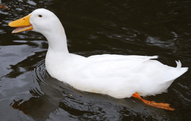 - Vzhľad. Toto plemeno na sebe nosí snehovo biele perie, s ktorým silne kontrastuje žltý zobák a nôžkami.